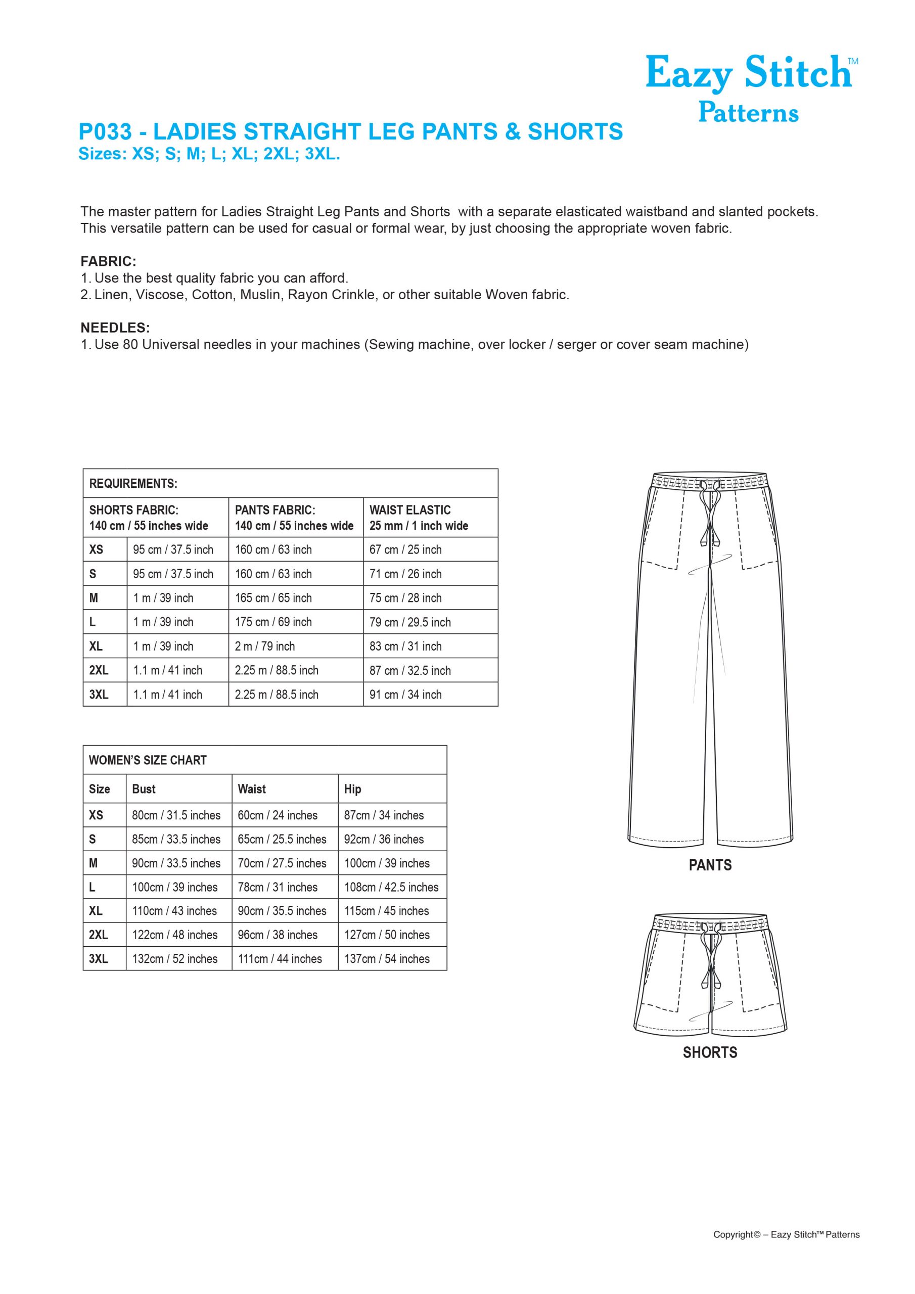 P033-PDF ~ LADIES STRAIGHT LEG PANTS & SHORTS